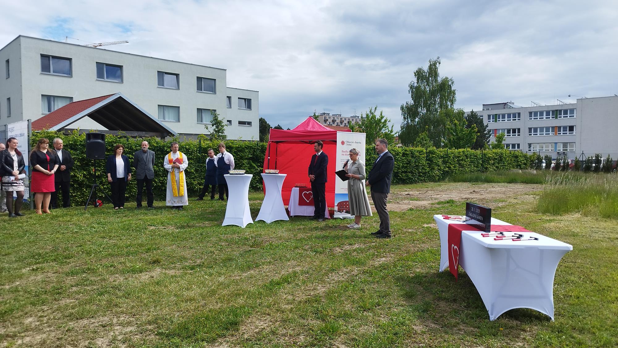 Ve středu 28. května 2025 se v Třebíči konala slavnostní akce pořádaná Charitou Třebíč – požehnání základního kamene nového Centra sv. Zdislavy. Toto centrum bude po svém dokončení poskytovat zázemí a podporu lidem v obtížných životních situacích. Do příprav i samotného průběhu se zapojili žáci naší školy. Cukráři připravili sladké dezerty, které nadchly svou chutí i vzhledem. Kuchaři - číšníci zajistili slavnostní pohoštění: slané chuťovky, postarali se o servis přípitku, nápojů a kávy.