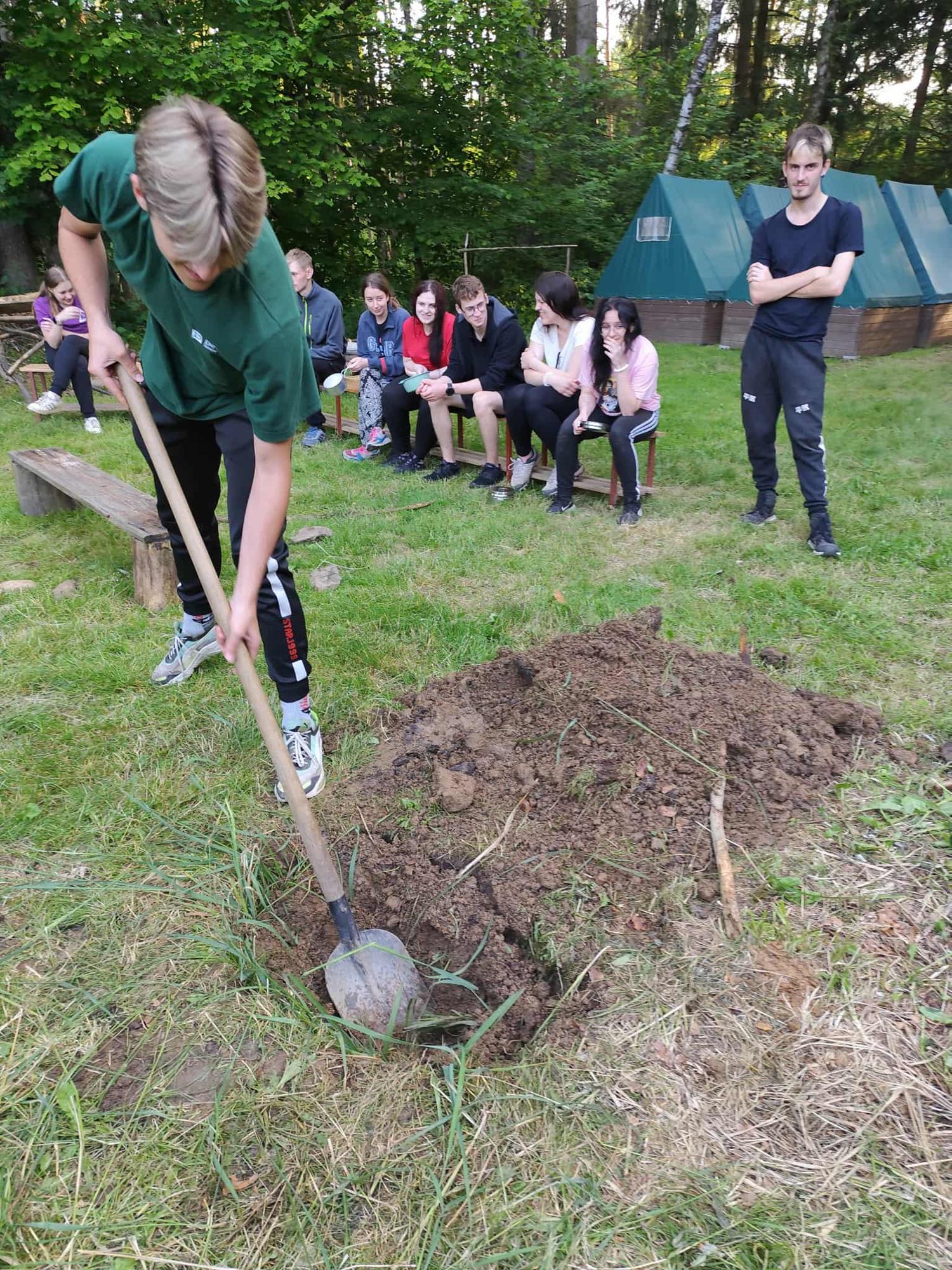 Koncem června se na tábořišti u Mrákotiína poprvé uskutečnil kurz Expedice v přírodě, kde si žáci napříč všemi obory vyzkoušeli spoustu činností. Během čtyřech dní se naučili rozdělávat oheň, orientovat na mapě, upéct kuře v zemi na horkých kamenech, postavit saunu a také ji využít. V programu nechyběla ani noční hra.