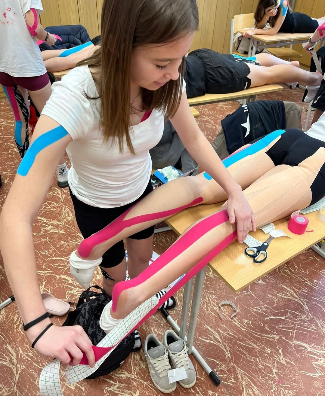 Během listopadu proběhl dvoudenní kurz tejpování. Žáci se naučili základní techniky tejpování a principy jeho fungování. Samozřejmostí byla i praktická část, při které si vše na sobě navzájem vyzkoušeli a naučili se jednotlivé techniky.