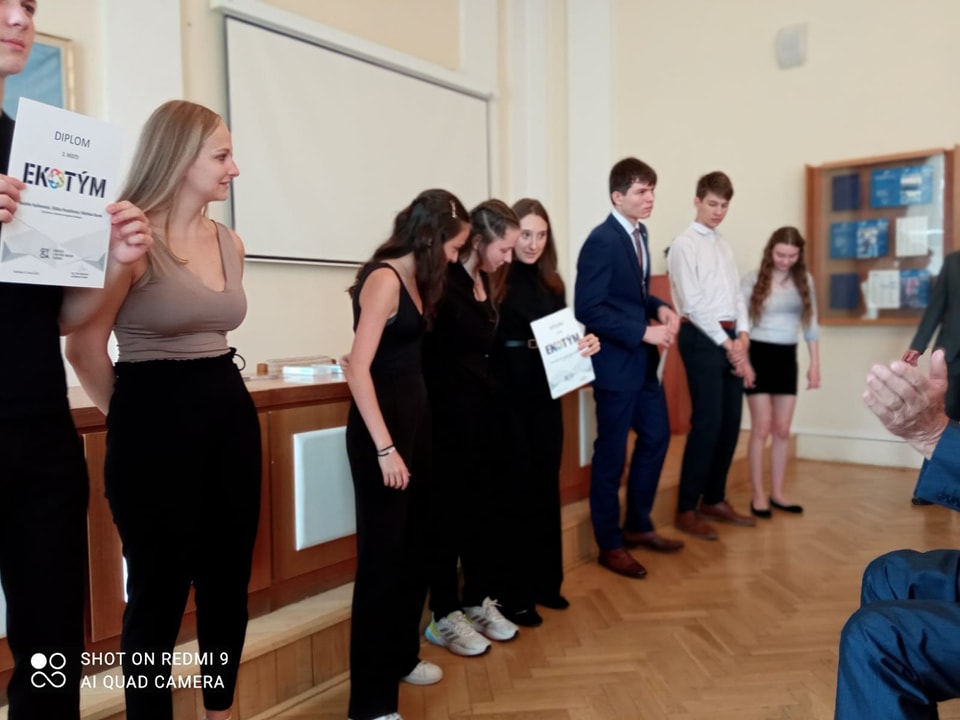 Zúčastnily jsme se krajského kola soutěže Ekotým, které proběhlo v Pelhřimově. Soutěž byla rozdělena do dvou částí. V první části jsme řešily vědomostní test zaměřený na oblast ekonomiky, práva, účetnictví a informatiky.