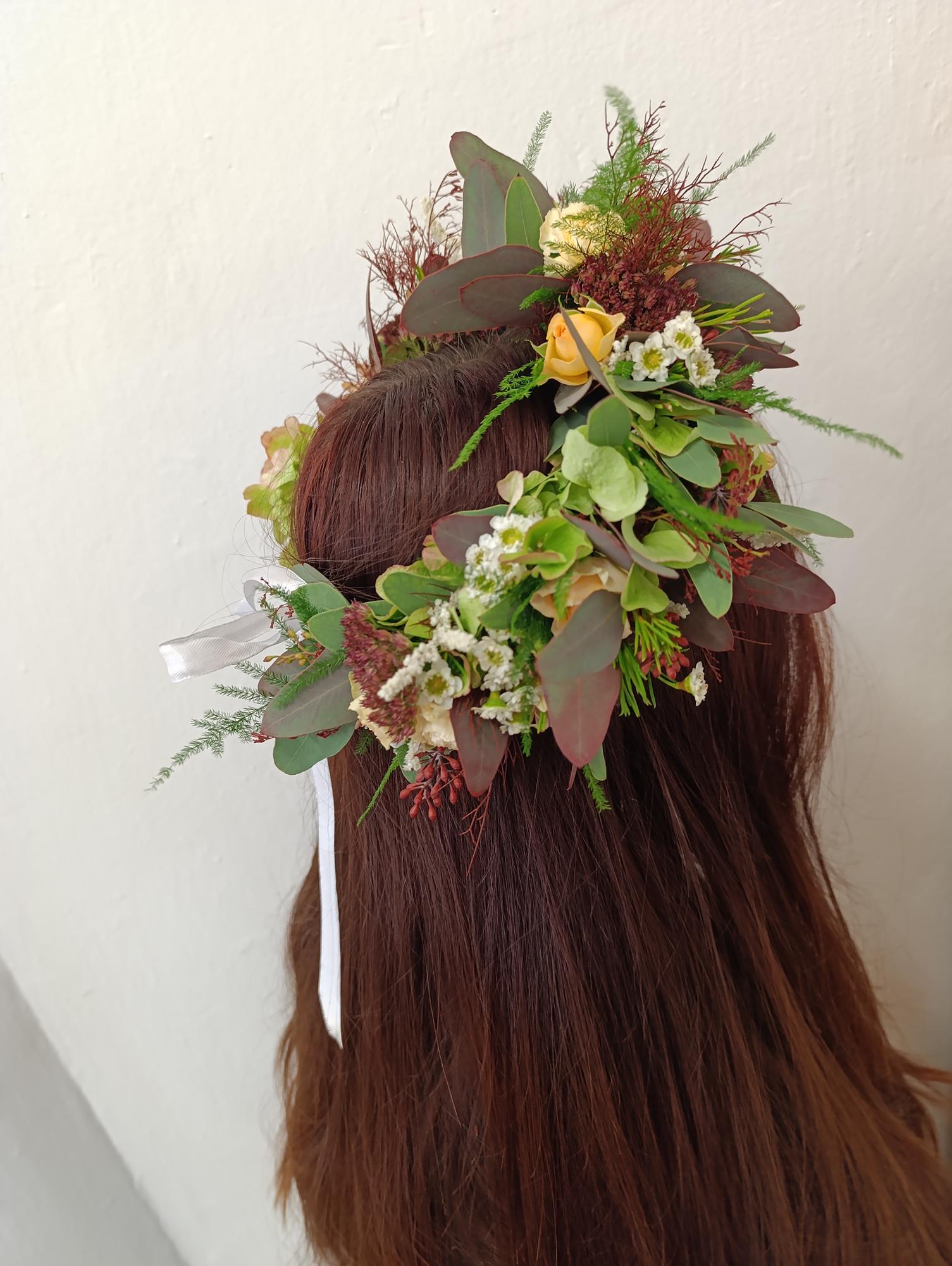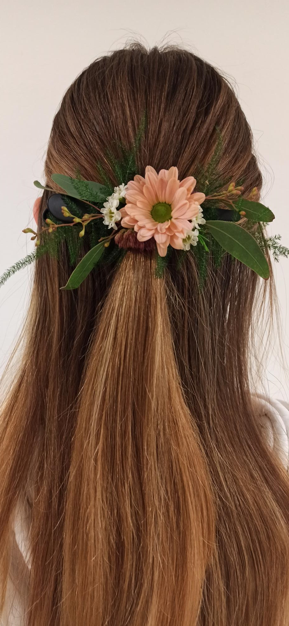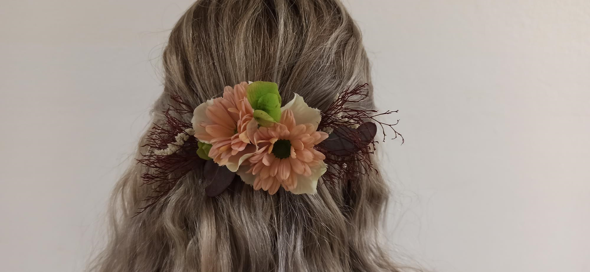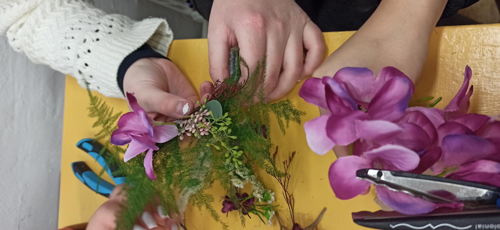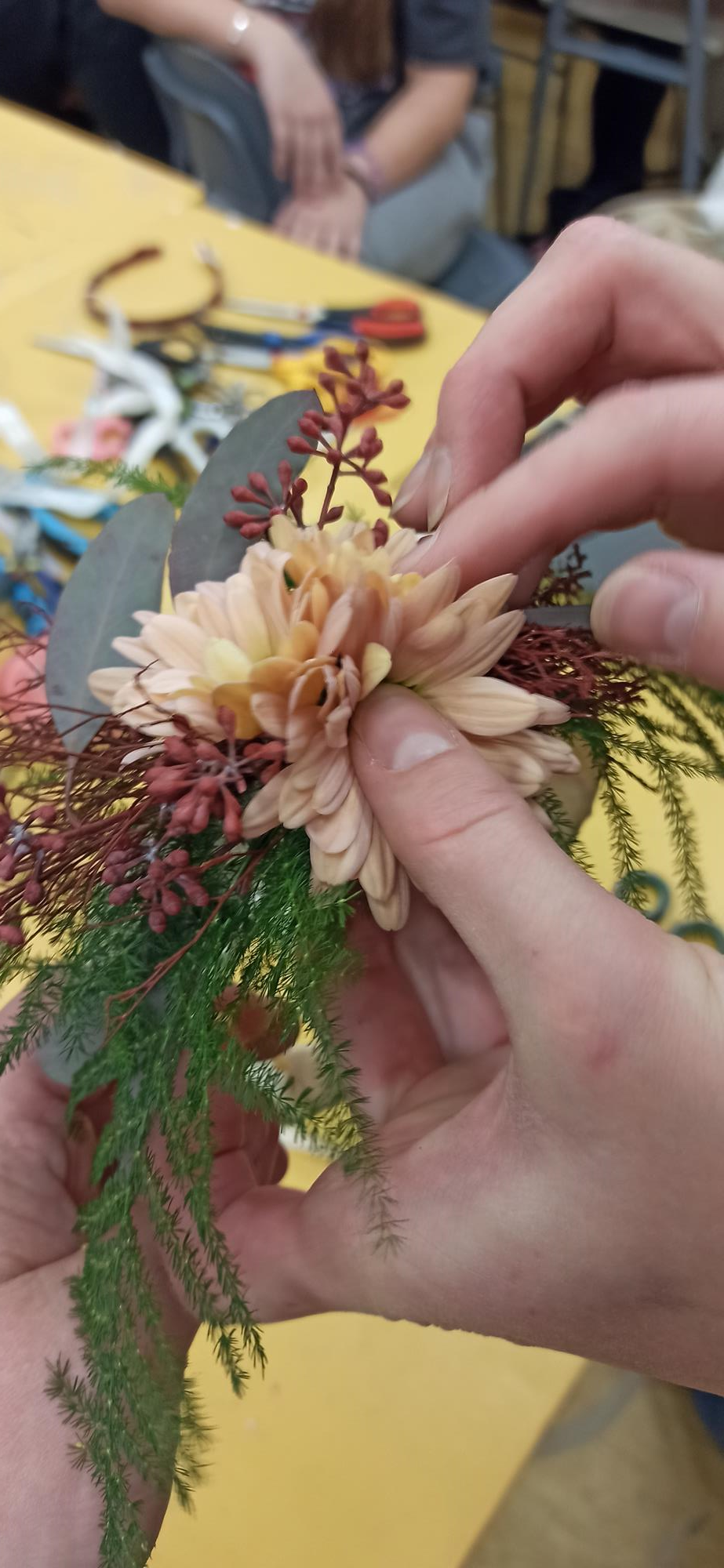 Živé květy v účesu vypadají nádherně. Abychom se dozvěděli, jak správně zacházet s živou květinovou ozdobou, navštívili jsme naše floristy. Paní učitelka nás naučila, jak květiny aranžovat, jak je připevnit na skřipec nebo na čelenku. Dozvěděli jsme se i to, že hotovou ozdobu máme uchovávat před použitím v lednici, což nás docela překvapilo. Bylo to zajímavé a zase jsme se něco nového naučili. Získané dovednosti můžeme využít v praxi a při závěrečné zkoušce. Jak se vám líbí výsledky tvorby floristek a kadeřníků?