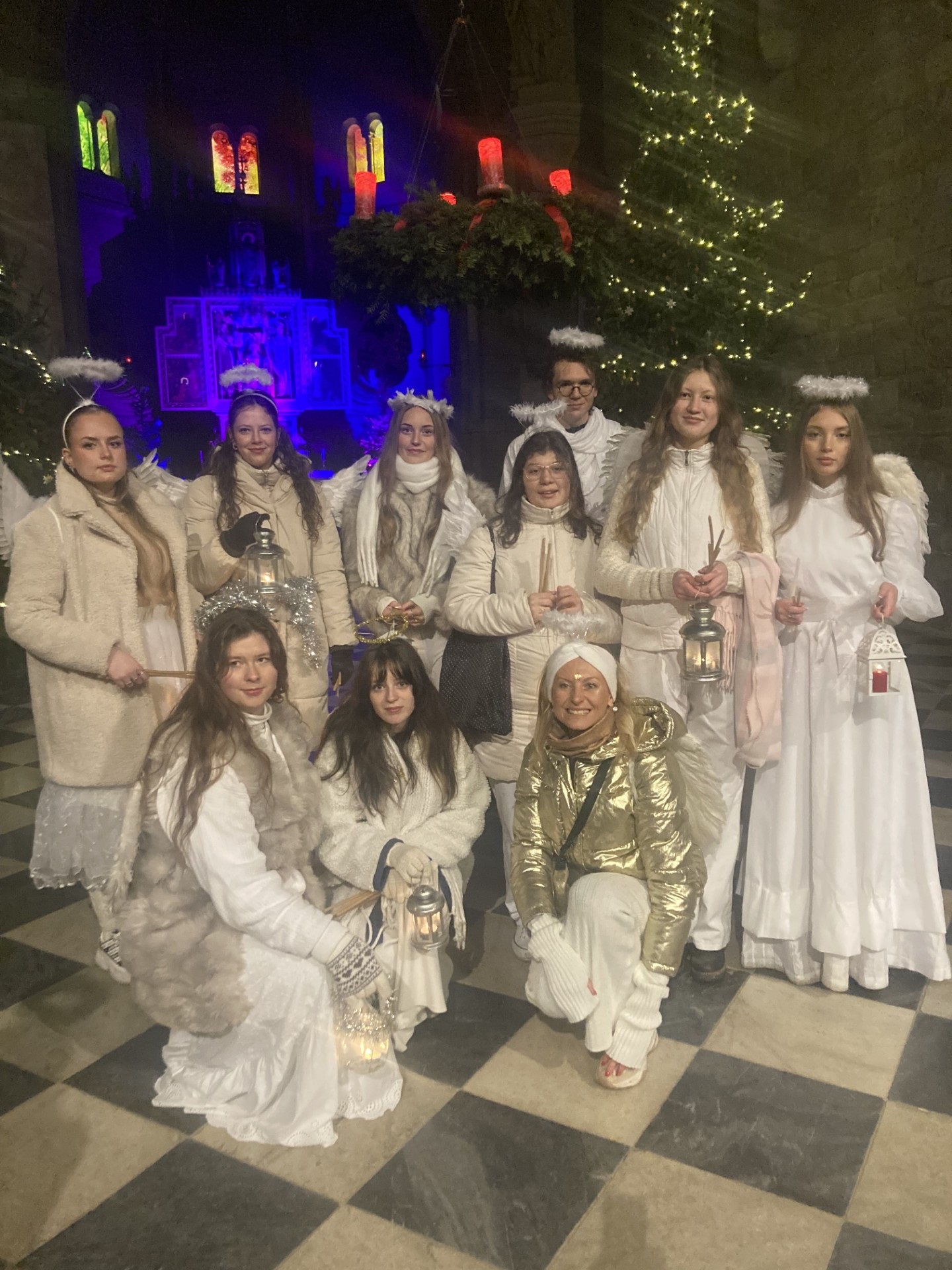 Poslední adventní neděli studenti a studentky cestovního ruchu na sebe oblékli netradiční kostýmy, aby se připojili k průvodu dalších andělů s Betlémským světlem. Sraz andílků byl v bazilice sv. Prokopa, odkud s lucerničkami putovali přes židovskou čtvrť na Karlovo náměstí. Zde je čekali občané Třebíče, kteří si od lampiček zapálili svůj vlastní plamínek pokoje. Vše probíhalo v krásné vánoční atmosféře. Všem nebeským bytostem to moc slušelo.