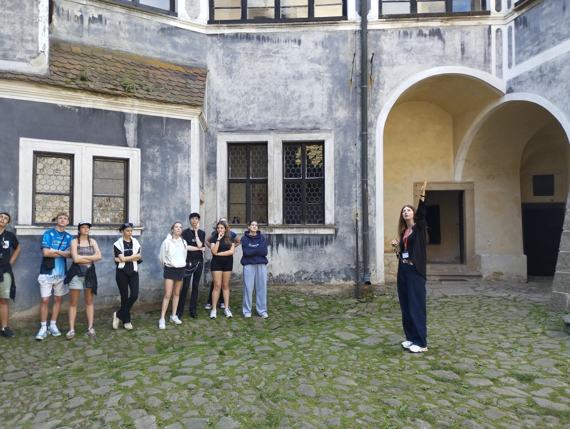 Druhá část programu nás zavedla na hrad Buchlov, jeden z nejstarších hradů na Moravě. Zde nás provedly naše spolužačky ze třídy CR3, které zde v rámci povinných praxí v červnu dělaly průvodkyně. Tak jak už to na prohlídkách chodí, seznámily nás s historii hradu a provedly nás hradními sály. Z vrcholku hradní věže se nám naskytl nádherný výhled do okolí a na pásmo Chřiby.