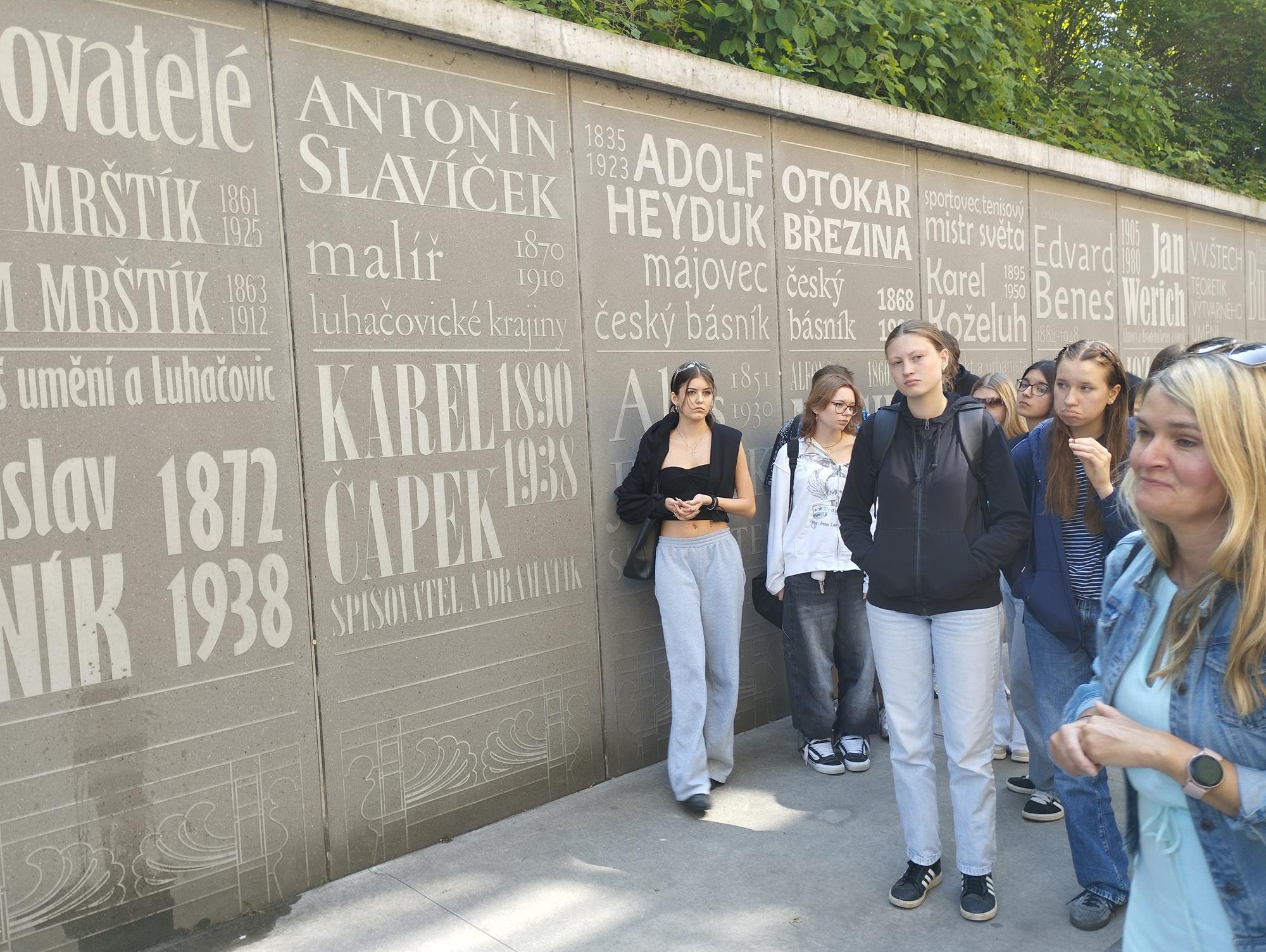 Naší první zastávkou byly Luhačovice, známé lázeňské město. Prošli jsme se po kolonádě, kde jsme ochutnali místní minerální prameny, dozvěděli se více o historii lázeňství a obdivovali architekturu Dušana Jurkoviče a typických dřevěných staveb v secesním stylu. Na zdi slávy jsme také zjistili jména slavných osobností, které lázně navštívily. Z našeho kraje jsme poznali Otokara Březinu.