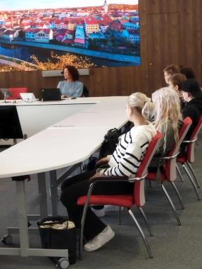 Na MěÚ nás provázela mluvčí města paní Irini Martakidisová. Prohlídku jsme začali v budově radnice na Karlově náměstí, v přízemí jsme se dozvěděli velmi zajímavá statistická fakta o našem městě. Poté jsme se přesunuli do zasedací místnosti, ve které byla přichystaná přehledná prezentace o činnosti jednotlivých orgánů města. Dále následovala prohlídka budovy na Masarykově náměstí, kde jsme usedli do hlasovací místnosti pro 27 zastupitelů. S paní mluvčí jsme mimo jiné diskutovali o tvorbě Třebíčského zpravodaje a jeho nové číslo jsme si odnesli domů. Děkujeme paní učitelce Švecové za možnost nahlédnout do správy města.