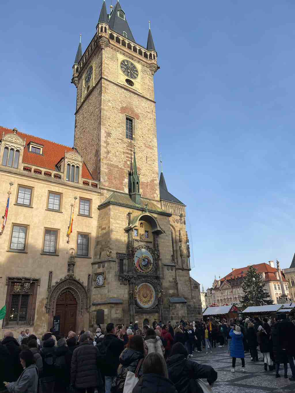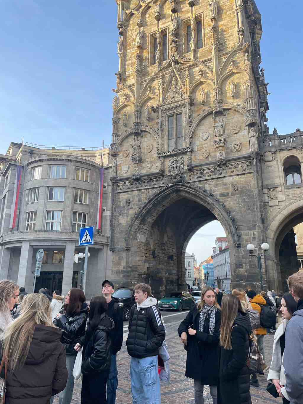 Další zastávkou byl Dům U Černé Matky Boží, ikonická kubistická stavba, jež zaujala nejen svým tvarem, ale i odvahou v pojetí architektury. Následoval pražský orloj, kde jsme se na chvíli zastavili a vychutnali si ruch Staroměstského náměstí, a poté Karolinum a Stavovské divadlo, místa spjatá s kulturní a vzdělanostní tradicí Prahy.
